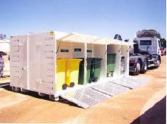 Nuestra empresa se ha mostrado en todo momento preocupada por la conservación del medio ambiente. Es por ello por lo que estamos en constante adaptación de nuestros productos y servicios. En la imagen se observa un área de recogida selectiva de R.S.U. portátil.